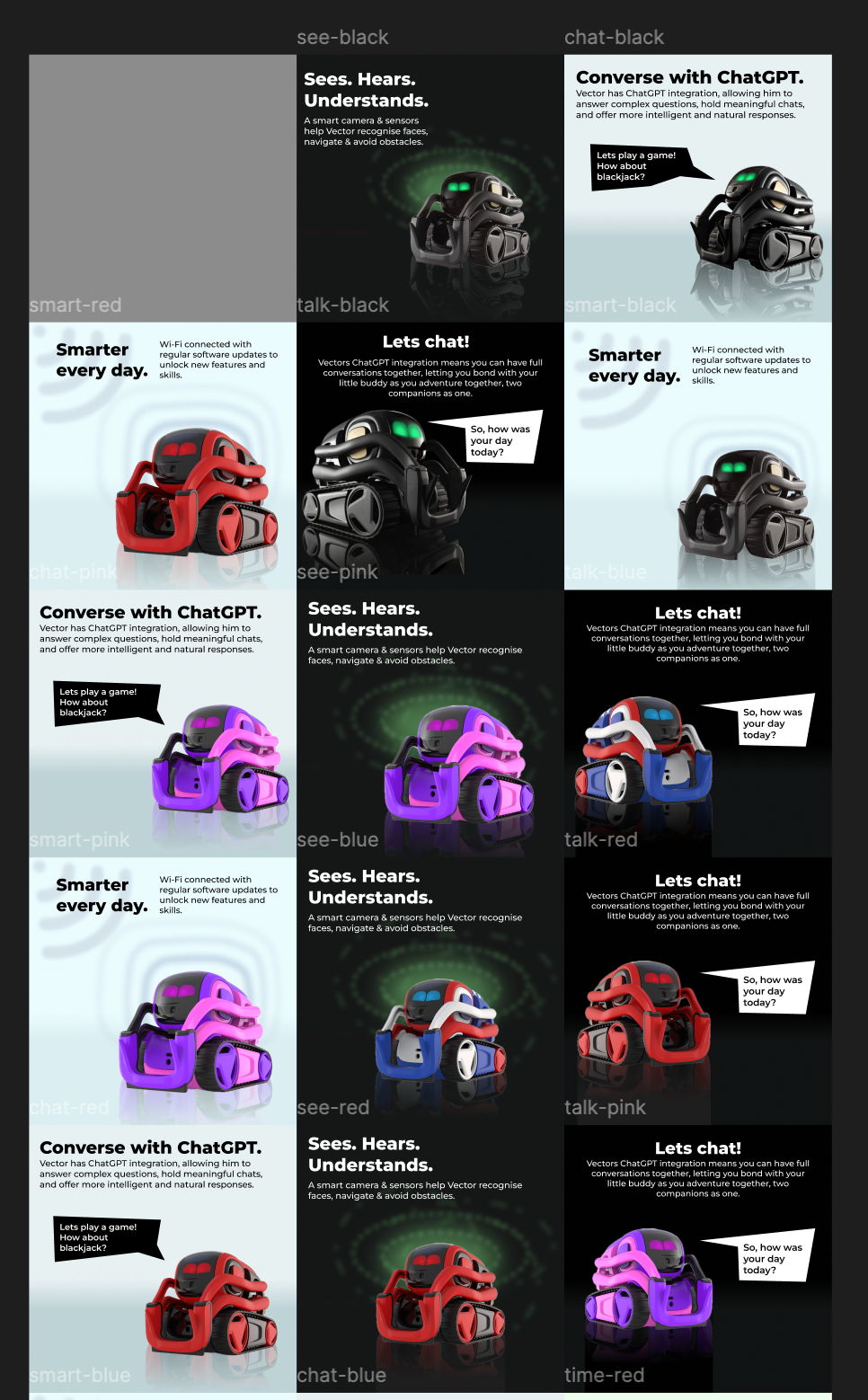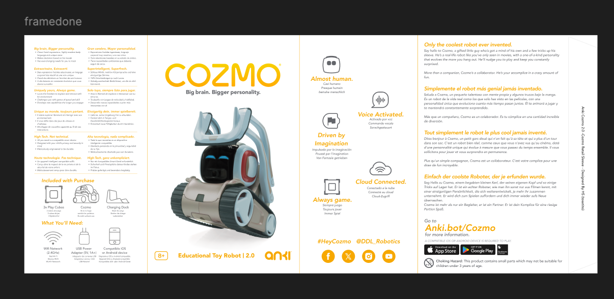 In early 2026, I did graphics work for Anki. This included packaging design for one of their flagship products (specifically, the Anki Cozmo 2.0), and marketing images for their Amazon listings.